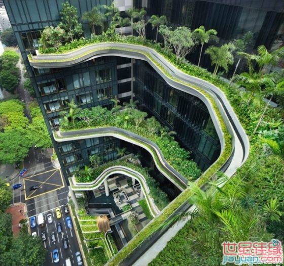 而且在26层和50层有连接着7栋楼长达500米的空中花园,是世界最长的两个空中花园,提供了充足的公共空间让公众既可利用来休闲和交流,又可鸟瞰市区景色。