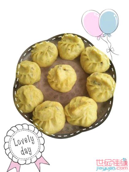 天热出不去,鼓捣吃吧。包子面皮加了一小勺姜黄粉,刚学的,颜色漂亮,百度姜黄粉功效还不错。