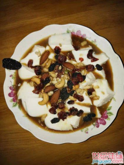 冰粉加了奶,冰色变奶白色,更有味道。