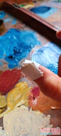 由于手对颜料有反映,脱了皮,只能缠上胶布继续加油了。![]()