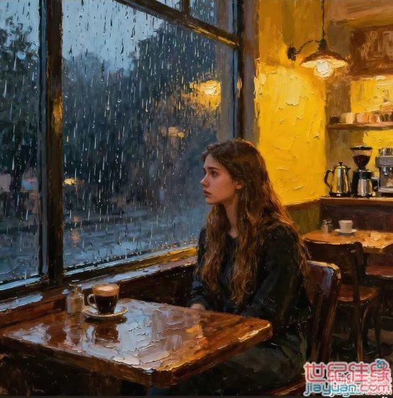 咖啡馆 下雨的街道 独自遐思的单身美女 烟雨迷蒙 咖香缭绕 她们在想什么呢?