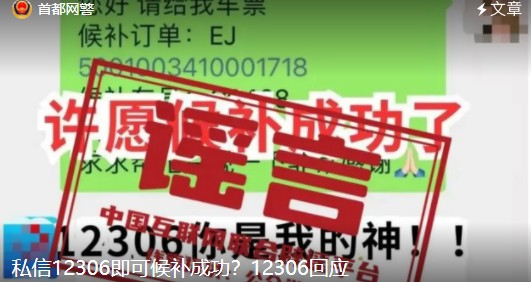 朝阳网警2026年3月8日【网警说安全】私信12306即可候补成功?12306回应。