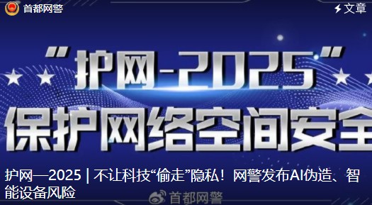 朝阳网警2025年8月25日【网警说安全】《护网—2025 | 不让科技“偷走”隐私!网警发布AI伪造、智能设备风险》