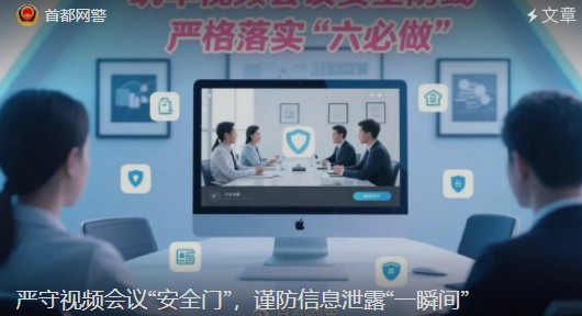 朝阳网警2025年7月28日网警说安全】严守视频会议“安全门”,谨防信息泄露“一瞬间”。
