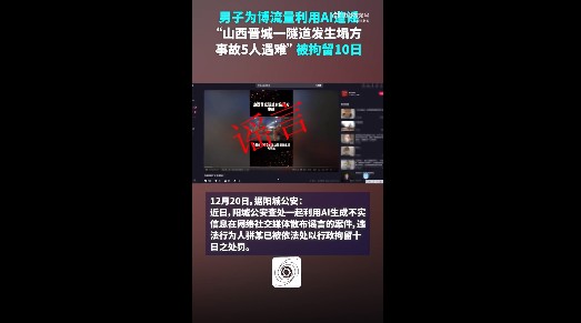 朝阳网警2025年12月26日【网警说案】利用AI造谣“中国女篮”,两男子被北京公安机关刑拘。
