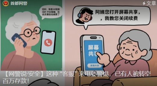 朝阳网警2025年10月4日【网警说安全】这种 “客服” 来电要警惕,已有人被转空百万存款!