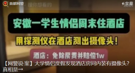 朝阳网警2025年10月4日【网警说案】大学情侣度假发现酒店房间内装有摄像头?真相是→