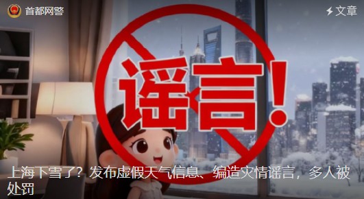 朝阳网警2025年10月9日【网警说安全】净网—2025|上海下雪了?发布虚假天气信息、编造灾情谣言,多人被处罚