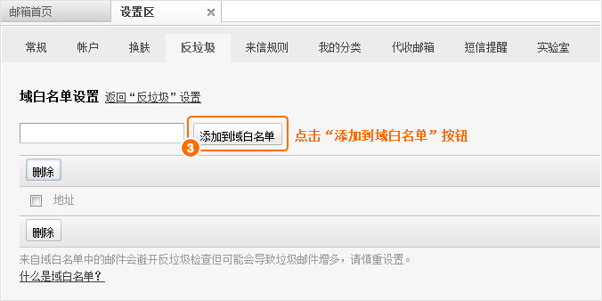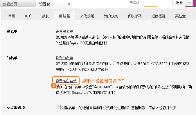 第二步:点击“反垃圾”标签中的“设置域白名单”