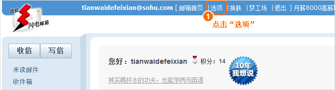 第一步:进入邮箱,点击网页上方的“选项”