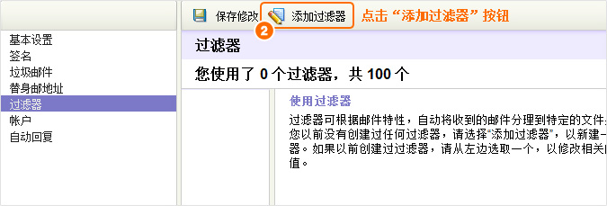 第三步:首先在“新过滤器”中的“发件人包含”框填入"info@jiayuan.net",然后在“移至文件夹”框中选择“收件箱”,最后点击“保存修改”按钮即可